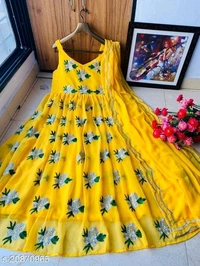 Fabric: Georgette Sleeve Length: Sleeveless Pattern: Dyed/ Washed Multipack: 1 Sizes: Free Size (Bust Size: 46 in, Length Size: 54 in, Waist Size: 48 in, Hip Size: 44 in, Shoulder Size: 16 in) XXL (Bust Size: 44 in, Length Size: 52 in, Waist Size: 46 in, Hip Size: 42 in, Shoulder Size: 15 in)