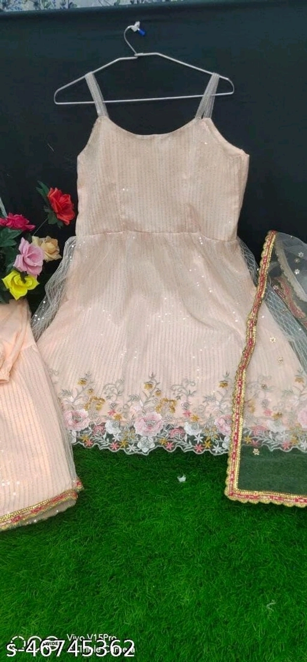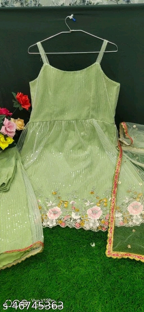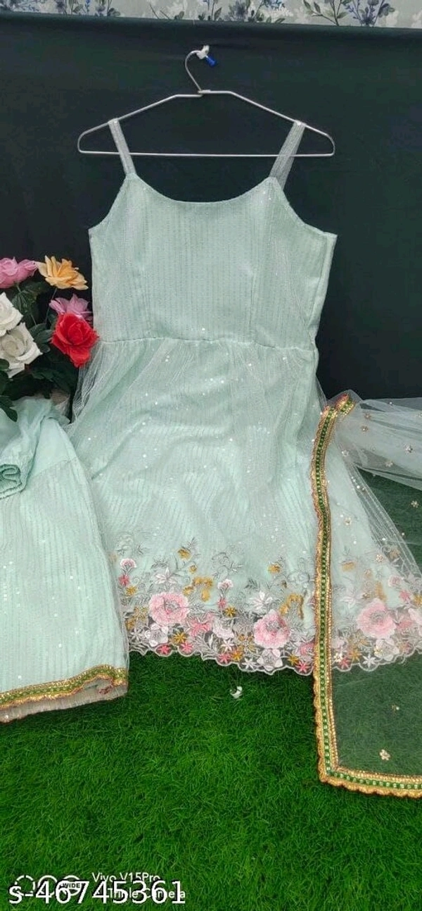 Kurta Fabric: Net Fabric: Net Bottomwear Fabric: Net Sleeve Length: Sleeveless Pattern: Embroidered Set Type: Kurta with Dupatta and Bottomwear Stitch Type: Stitched Multipack: Single Sizes: Free Size Dispatch: 2-3 Days