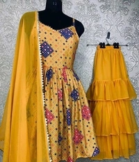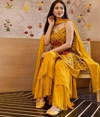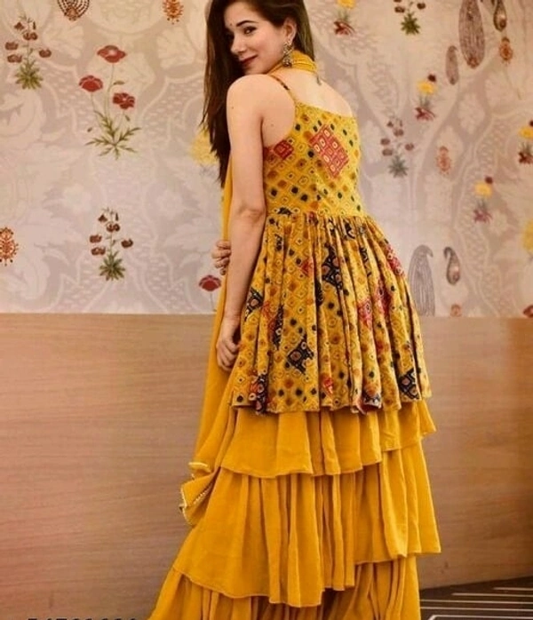 Top Fabric: Silk Blend Bottom Fabric: Georgette Multipack: 1 Sizes: XL (Top Bust Size: 36 in, Top Length Size: 36 in, Bottom Waist Size: 36 in, Bottom Length Size: 45 in) XXL (Top Bust Size: 38 in, Top Length Size: 36 in, Bottom Waist Size: 38 in, Bottom Length Size: 45 in) ?? PRESENTING NEW FANCY DESIGNS DIGITAL PRINT WORK WESTERN TOP - PLAZZO WITH DUPATTA ?? ? FABRIC DETAILS ? ? TOP : HEAVY BUTTER SILK + SATOON INNER WITH FANCY DIGITAL PRINT (front&back side) AND UNSTITCHED SHORT *SLEEVE * FABRIC # TOP LENGTH : 34-36 INC XL SIZE FULL STITCHED (XXL MARGIN) ? PLAZZO : HEAVY GEORGETTE SILK + INNER BUTTER SILK WITH 3 LAYER RUFFLES WORK. UP TO XXL. FULL STITCHED # PLAZZO LENGTH : 43-45 INC ? DUPATTA : HEAVY GEORGETTE WITH FANCY LACE BORDER WORK. CUT 2.10-2.20 MTR