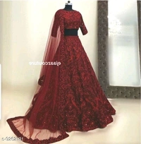 Topwear Fabric: Taffeta Silk Bottomwear Fabric: Taffeta Silk Dupatta Fabric: Net Set type: Choli And Dupatta Sizes: Semi Stitched (Lehenga Waist Size: 44 in, Lehenga Length Size: 42 in, Duppatta Length Size: 2.2 m) Dispatch:1 day