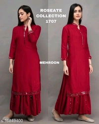 L (Bust Size: 40 in, Shoulder Size: 15 in, Kurta Waist Size: 38 in, Kurta Length Size: 45 in, Bottom Waist Size: 38 in, Bottom Hip Size: 42 in, Bottom Length Size: 45 in)