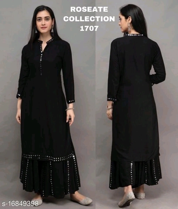 Palazzos Highlighted With Aari Mirror Work Kurti Set