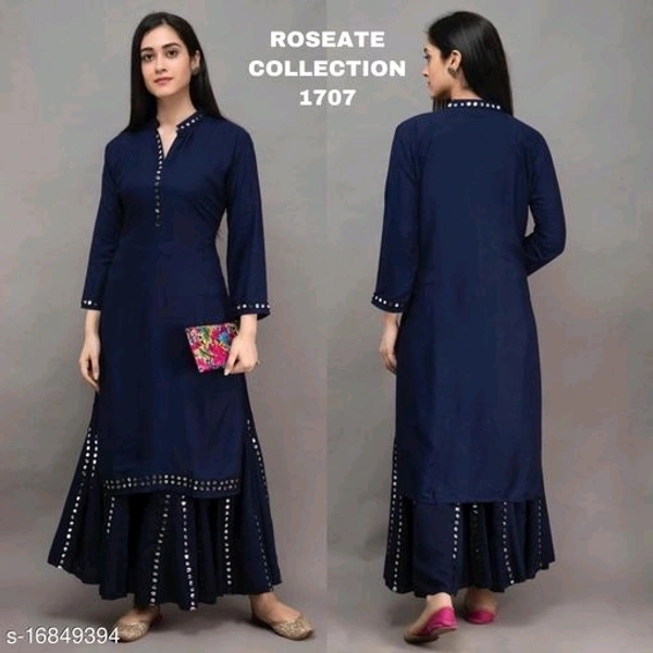 Kurta Fabric: Rayon Bottomwear Fabric: Rayon Fabric: Rayon Sleeve Length: Three-Quarter Sleeves Set Type: Kurta With Bottomwear Bottom Type: Trousers Pattern: Dyed/ Washed Multipack: Single Sizes: XL, L, XXL, M