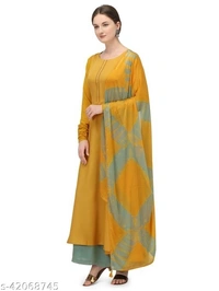 This ever so green festive yet easy to maintain flared kurta with gold print dupatta most elegant and graceful silhouette to suit your festive outing this season and it can balance between functional and trendy, Wear it to work, dinner or for pujas you can never go wrong , Team it up with pant's, palazzo's, churidar to complete the look