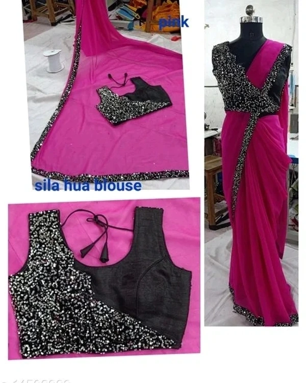 Saree Fabric: Georgette Blouse: Stitched Blouse Blouse Fabric: Velvet Multipack: Single Sizes: Free Size