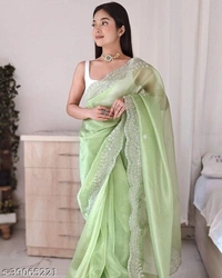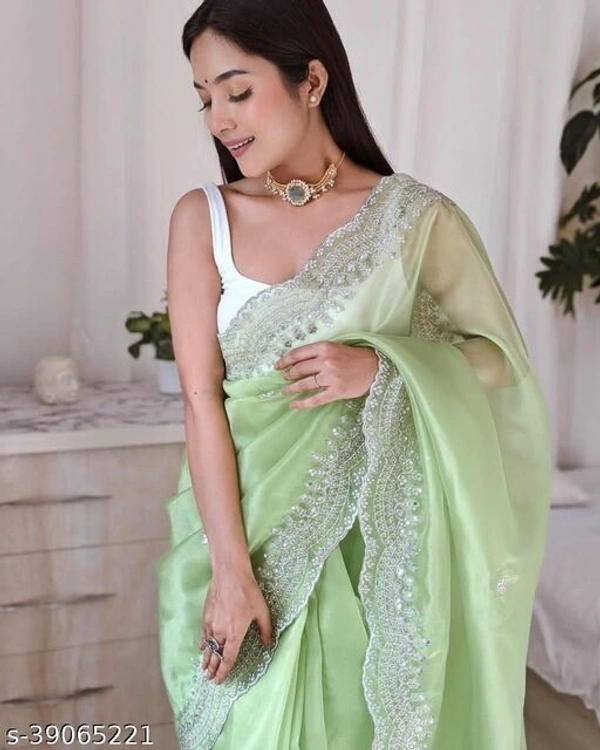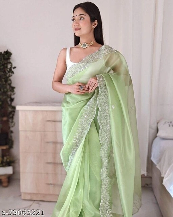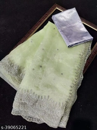 SAREE FABRIC : Heavy Pure organza , WORK : Beautiful full 3mm sequence work with thred work , BLOUSE :- silver zari heavy