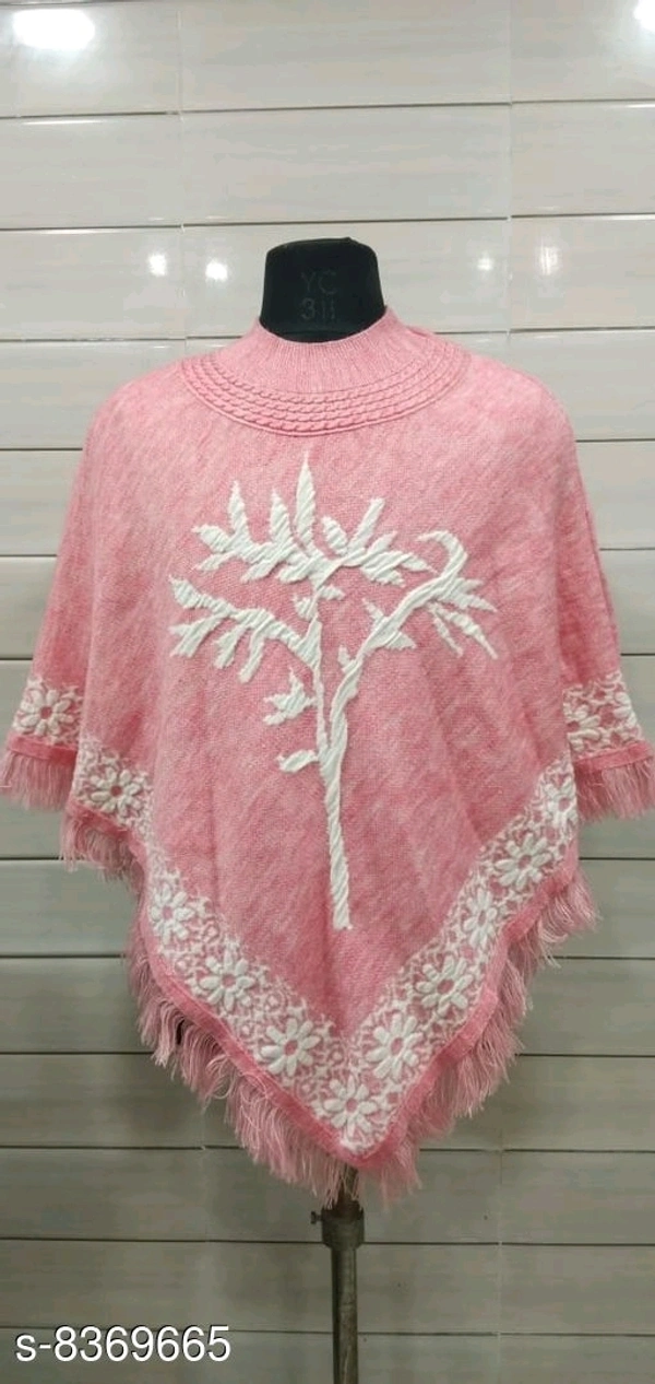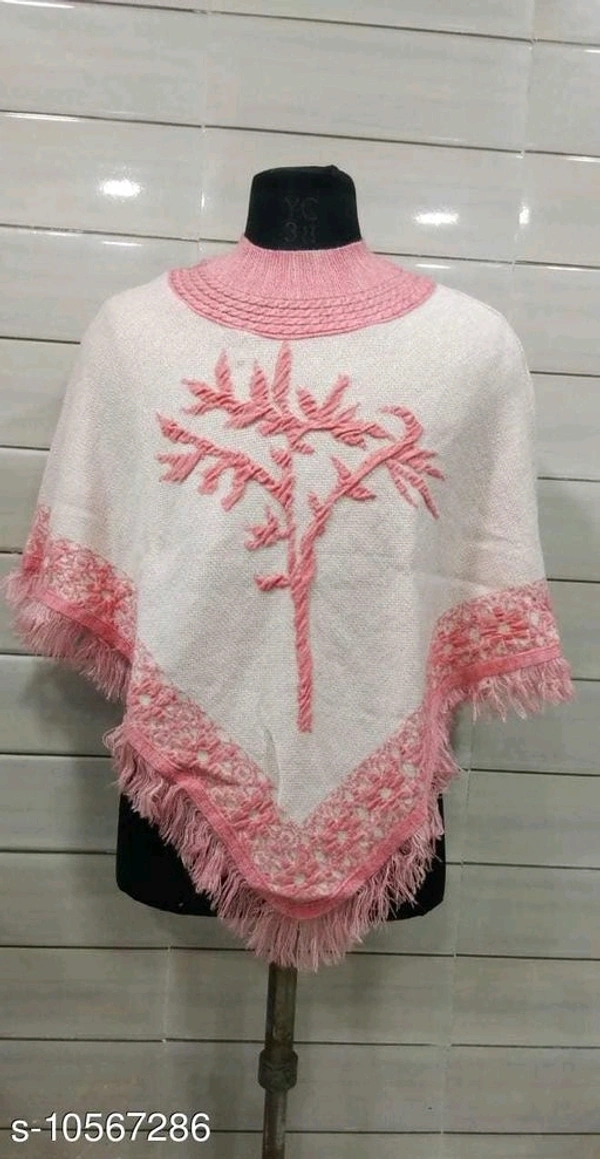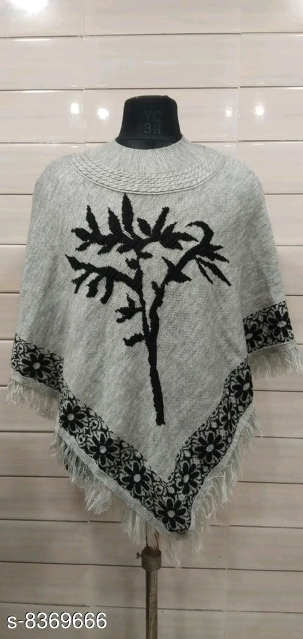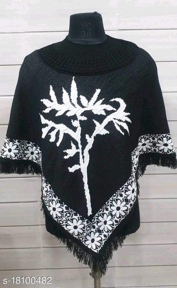 Fabric: Wool Fit/ Shape: Winter Poncho Pattern: Embroidered Multipack: 1